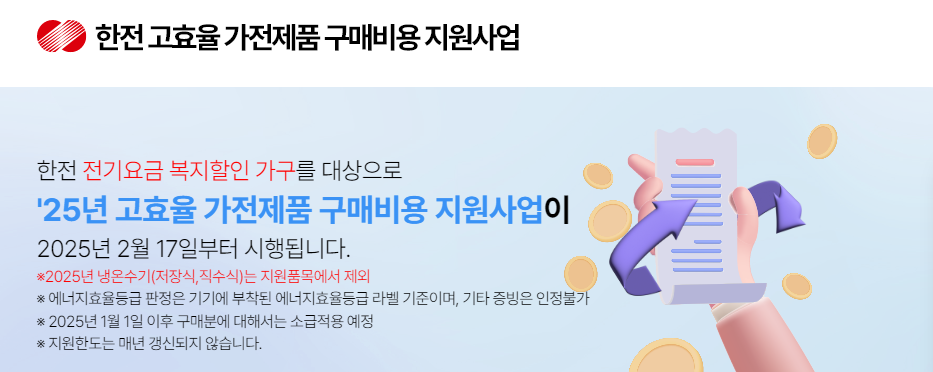 한국전력공사(이하 한전)에서는 에너지 효율 향상과 전력 수요 절감을 위해 매년 다양한 소비자 지원 정책을 운영하고 있습니다. 그중에서도 가장 실생활에 와닿는 정책이 바로 ‘고효율 가전제품 구매지원사업’입니다.